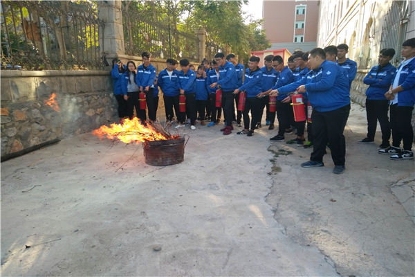 首先,吕运福老师给同学们介绍了手提式干粉灭火器的规格、分类、适用范围、使用方法及灭火过程中应注意的事项。现场教给同学们如何鉴别及正确使用灭火器,按着一提、二拔、三对的步骤进行灭火。然后,设置火场,让同学们进行灭火器灭火的现场体验,大家在体验过程中聚精会神听讲,严肃认真操作。接着消防兵退伍的姜子健同学为安全员们讲解了用消防水带灭火的注意事项和动作要领,并在现场为同学们做灭火示范,通过手把手教,一对一练,同学们掌握了火场灭火的基本动作要领,提高了消防自救能力。