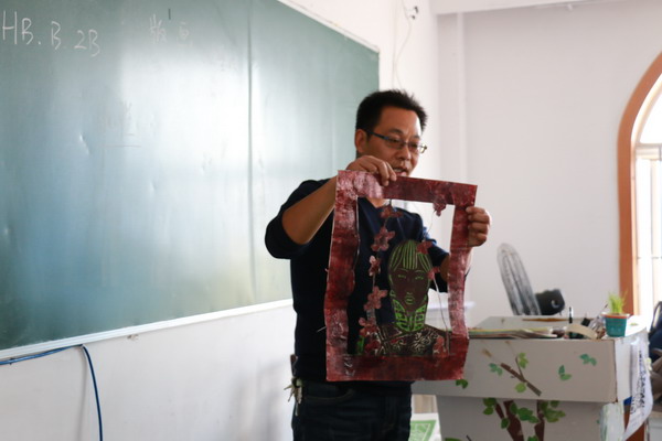 老师以诙谐幽默的讲课方式,为院学生进行授课。主要让学生明确少儿美术教学的特点及少儿版画制作的技巧。同时老师详细讲解少儿版画并带领学生制作少儿版画,从而让学生对版画有更加进一步的认识与了解。