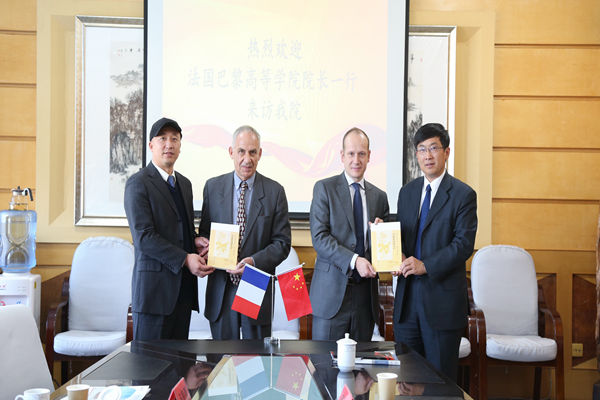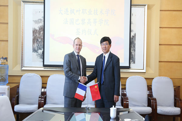 法国巴黎高等学院院长德拉卡尔与杨捷院长庆祝两校成功建立友好合作关系