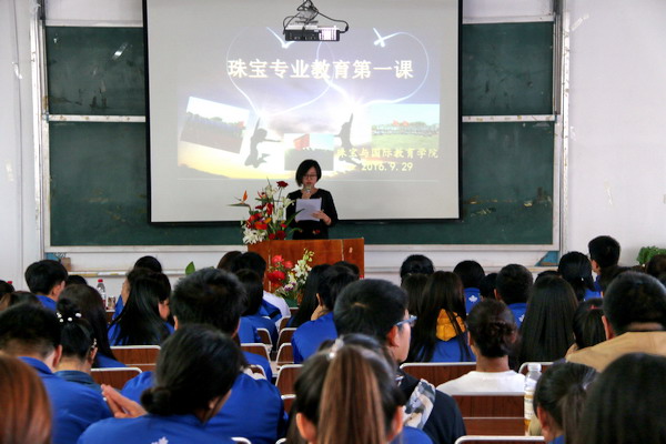 珠宝专业介绍以微电影拉开序幕,微电影里面展示了每个特色实训室的上课模式,为16级新生详细的介绍珠宝专业的特色。全国各地在珠宝岗位上勤奋努力工作着优秀毕业生们发来视频,鼓励15、16级的学弟学妹们,分享着他们在职场的经验。紧接着是珠宝专业团队负责人孙艳老师对16级新生的专业展望和寄语。