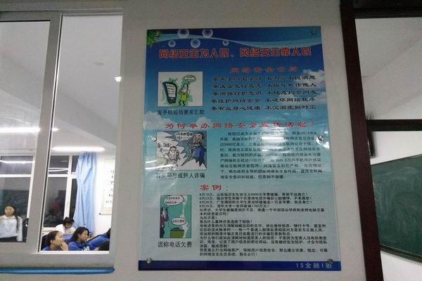 为加强同学们的网络安全意识,提高同学们学习有关网络安全知识的热情度,2016年9月27日大连枫叶职业技术学院通关系举办了以“网络安全为人民,网络安全靠人民”为主题的板报评比活动。