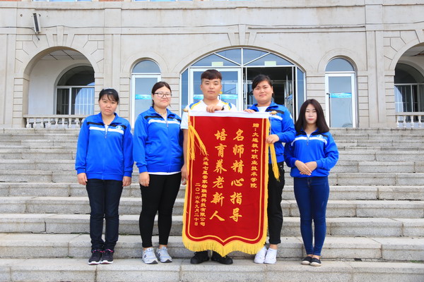 2016年9月23日,身着紫色工服的七星管家物联网科技有限公司领导与员工到我院老服专业参观考察,洽谈深度合作事宜,并我院老年服务管理的老师和学生志愿者奉送锦旗一面。参加本次授旗仪式的有七星管家物联网科技有限公司郭总、我校执行院长申秀梅、教务处长张冬冬、船舶与计算机系主任王晓琳和宋淼老师。