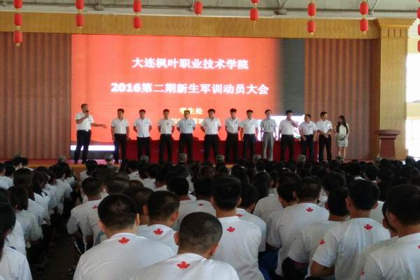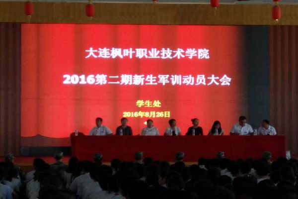 2016年8月26日,当娇艳的晨曦温暖的抚摸大地的时候,大连枫叶职业技术学院2016级新生的大学军训就在雄浑激昂的国歌声中开营了。参加本次新生军训动员大会的领导有:大连枫叶职业技术学院副院长申秀梅、学生处处长高成林、招生工作处处长焦伶俐、船舶系主任王晓琳、通关系主任林晓慧、通关系副主任徐凤龙。