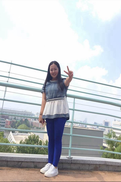 交换生(15会计3班王宠)在朝鲜大学留念