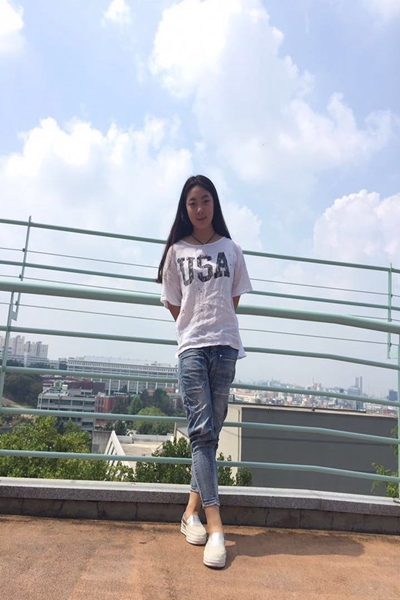 交换生(14报货6班胡佳欣)在朝鲜大学留念