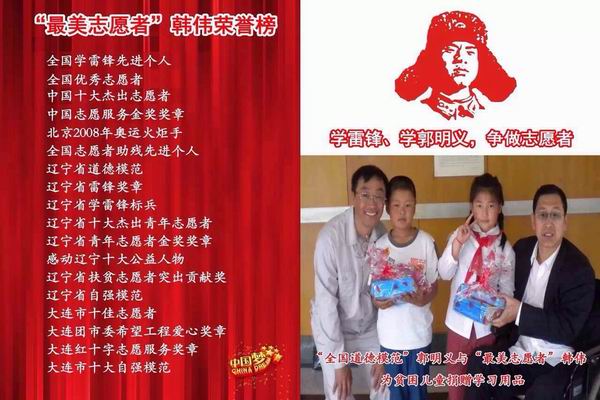 郭明义老师与韩老师一起做爱心事业