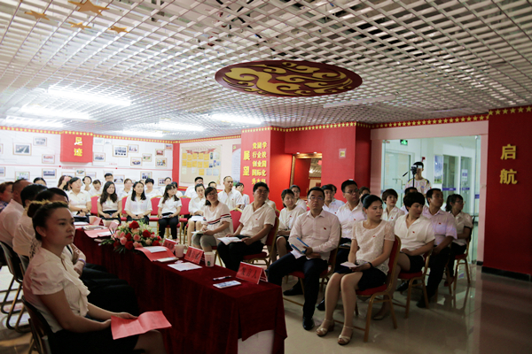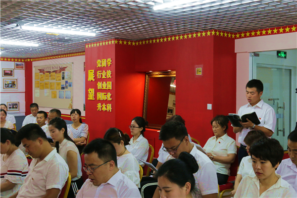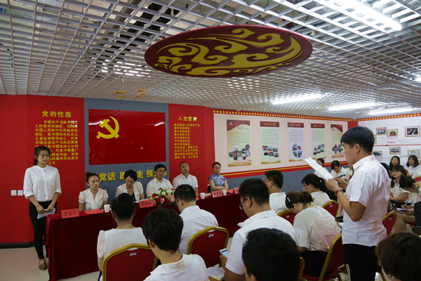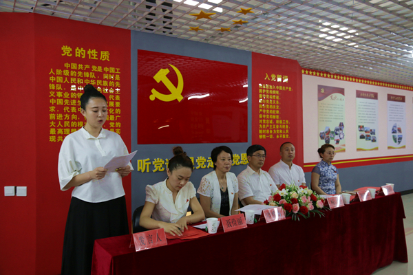 大会在气势恢宏、慷慨激昂的《红旗颂》中拉开帷幕,聂主任首先介绍了党员之家。学院党员之家自2016年6月1日起在上级领导的亲切关怀下开始建设,耗时27天,于6月27日晚全部落成。从一颗铆钉的选材到全部墙面展板的制作,凝聚着全体参与工作人员的辛勤付出和心血。参会人员伴随着PPT短片,共同回顾了党员之家的建设过程,内心无不涌起红旗高高飘扬的万千思绪。