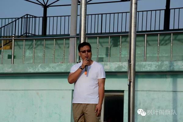 2016年7月4日清晨,大连枫叶职业技术学院2016级第一批新同学在运动场上举行了升旗仪式。升旗仪式由15会计2班的王艺晴同学主持。