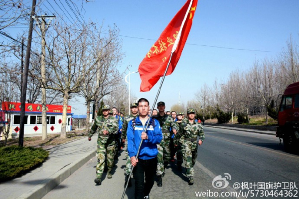 为有效提升国旗护卫队队员的综合素质,锤炼队员战斗作风,进一步提高护卫队行军作战能力,2016年4月9日上午08:30国旗护卫队组织了25公里的徒步行军拉练。