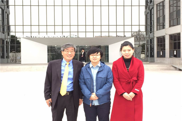 我院代表与水原大学校长秘书室长朴泰德和国际学院院长李新东合影