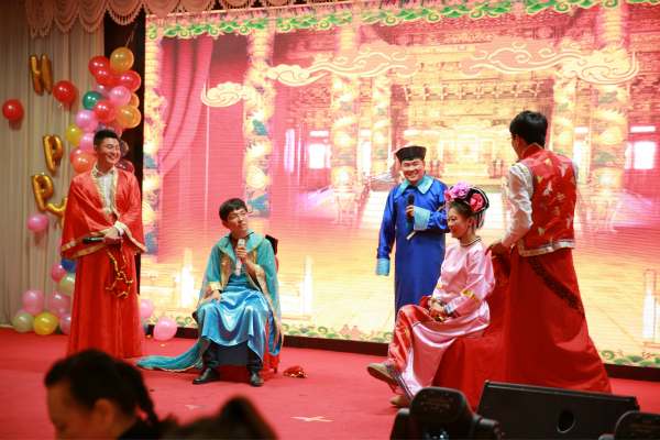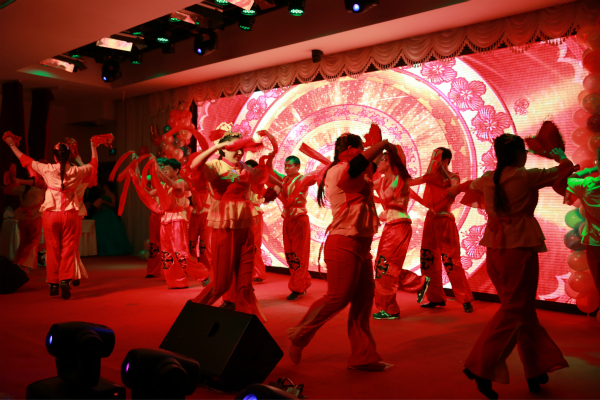 整场联欢会节奏欢快,生动有序。联欢会以舞蹈《开门红》拉开帷幕,热烈明快的舞步为会场注入了悦动的活力和喜庆的氛围;基础部带来的《玛依拉变奏曲》旋律动听,引人入胜;歌曲《相亲相爱一家人》温暖动人,悠扬的旋律和曲调唱响属于我们枫叶大家庭的共同旋律;薛飞老师、杨世平老师、王博老师带来的《歌曲串烧》充满创意和动感,引爆全场氛围;交谊舞《水晶之恋》浪漫华丽,给在场的观众带来了一场视觉盛宴;学生处处长高成林深情带来的一曲《匆匆那年》,引发了观众的纷纷互动;小品《甄嬛传》诙谐幽默、妙趣横生,引来大家的阵阵喝彩声;英语教研室带来的《那些年我们唱过的歌》令人忍不住共同轻轻哼唱;通关系的《三句半》充满智慧和幽默的话语让人忍俊不禁;最后招生工作处全体工作人员大合唱《同一首歌》让全场人无不为之感动。