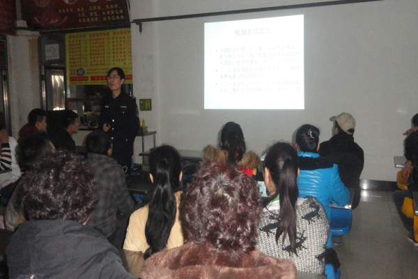 为提高餐厅食堂管理人员、操作人员的防火意识,我院于2015年11月20日下午13点,邀请大连久安消防知识宣传中心的孙丰河主任,为学院安全管理老师、食堂工作人员、安全预警分队进行了一堂“关注安全、关注消防”的专题讲座,讲座在学院餐饮中心的大厅内进行,学生处吕运福老师、船舶与计算机系刘文强老师、通关系安全部长候元、厨师长季德红及食堂全体工作人员一起聆听了讲座。