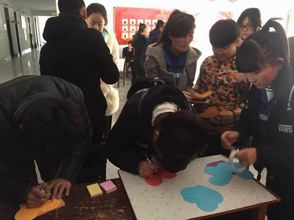 2015年11月26日,11月的第四个星期四,是一年一度的感恩节。大连枫叶职业技术学院通关系青年志愿者协会在通关系一楼大厅发起了青春需要有你—感恩墙的活动,发动大家积极参与到“秀感恩”的活动中来。参与的人络绎不绝,场面热闹非凡。