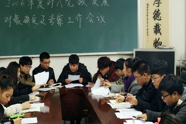 为更好地推动学校学生党建工作的开展,完善学生党员发展流程,使学生党员的发展更加科学化、规范化,确保学生党员发展工作的民主、客观、公正性,严把党员发展质量关,提高学生党员的发展质量,船舶与计算机系党小组于2015年12月1日晚19:00在学院五角楼党员活动室召开了2016年入党拟发展对象确立及考察指导工作会议。