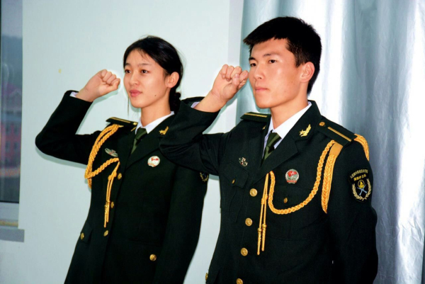 年年岁岁花相似,岁岁年年人不同,老队员走了,新队员肩上的担子更重了,79名15级新同学将接过老队员手中的枪,正式成为大连枫叶职业技术学院国旗护卫队队员,神圣的五星红旗,在每名新队员手中传递,这传递的不只是国旗,而是一份责任。新队员在发言中讲到:继承和发扬国旗护卫队“行事如风、纪律至首、刻苦训练”的建队理念,将责任与使命牢记在心,让青春在奉献中闪光,让热血在国旗下沸腾!我们全体新队员们要以老队员为榜样,发扬护卫队的优良传统,努力学习,刻苦训练,一定会把国旗护卫队做强、做大,让它成为大连枫叶职业技术学院的一张亮丽的名片。