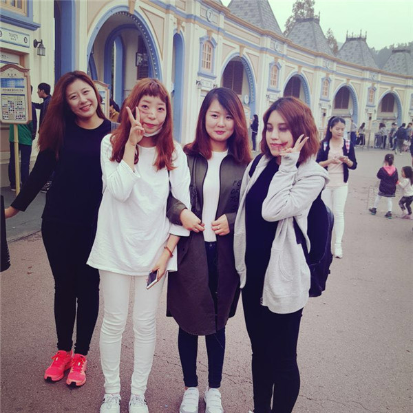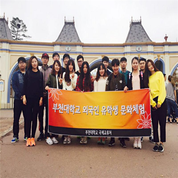 富川大学部分交换生在韩国爱宝乐园留影纪念