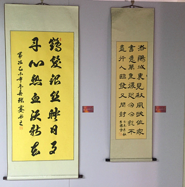 获奖作品:张赛(学生)《对联》(左),张慧洁(老师)《秋思》(右)
