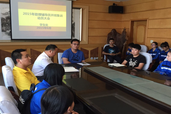 动员会于2015年6月12日上午11:30分,在学院2楼会议室进行,参加会议的有学生处处长高成林、通关系副主任徐凤龙、船舶与计算系团总支书记隋新、学生处吕运福、王博老师。