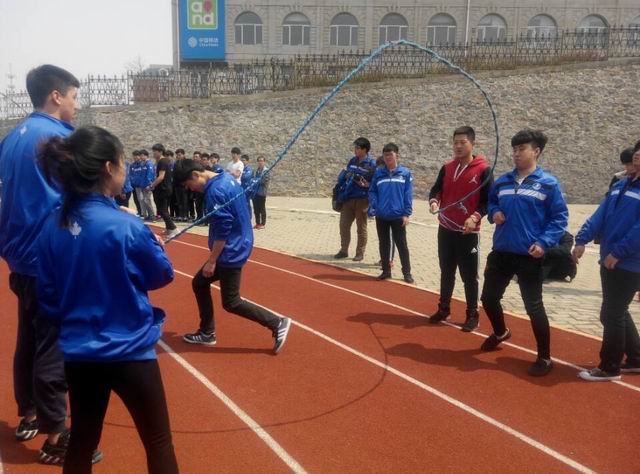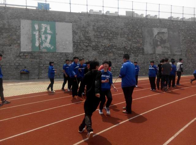 2015年4月21日中午11点50分,船舶与计算机系所有班级跳绳比赛的同学集聚运动赛场。同学们神采飞扬希望拿下这场比赛,为班级争得荣誉。担任本次裁判员的是船舶与计算机系团委书记隋新和船舶与计算机系系办刘姜青老师。