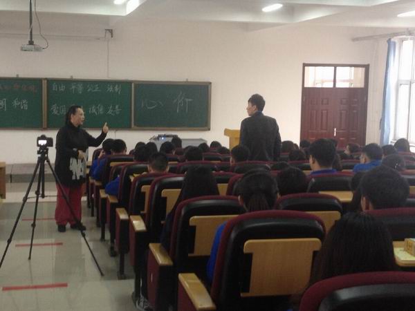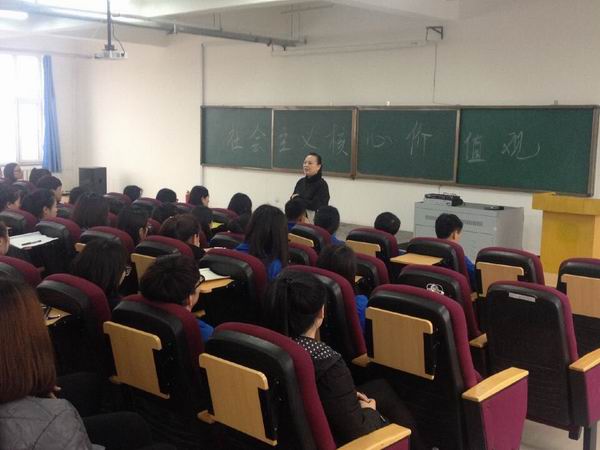 2015年4月2日下午,在通关系教学楼西多媒体教室,就习近平主席的几次演讲进行剖析,召开了以社会主义核心价值观为主题的教育宣讲。通关系副主任徐凤龙、通关系团委书记赵坤莅临指导,主讲老师是毕业于中央党校的姚桂苓老师,参加本次会议的还有各班班长、团支书、学习委员及学生会成员。