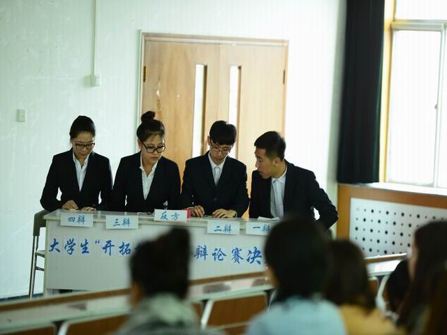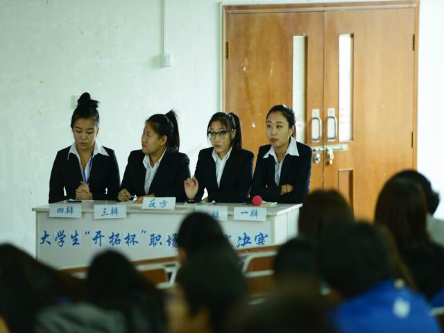 为促进我院优良学风的建设,丰富同学们的课外活动,培养大家的思辨能力和语言表达能力,我系大学生开拓者协会于2014年11月5日在西多举办了首届职场辩论赛。历经两个星期的层层选拔,于2014年11月18日进行职场辩论赛决赛。进入本次决赛的班级有14日语,14宝石1,14宝3,,13人力,13英语以及13旅游。莅临本次决赛的评委老师有王晓琳主任,张桂春主任以及各教研组老师。此次辩论赛宗旨在于锻炼大学生语言交流能力,观察团队协调能力。要求参赛选手有团队合作意识,思维条理清晰,临场应变能力强,服装整洁,有风度,不把情绪带入赛场,冷静自持。
