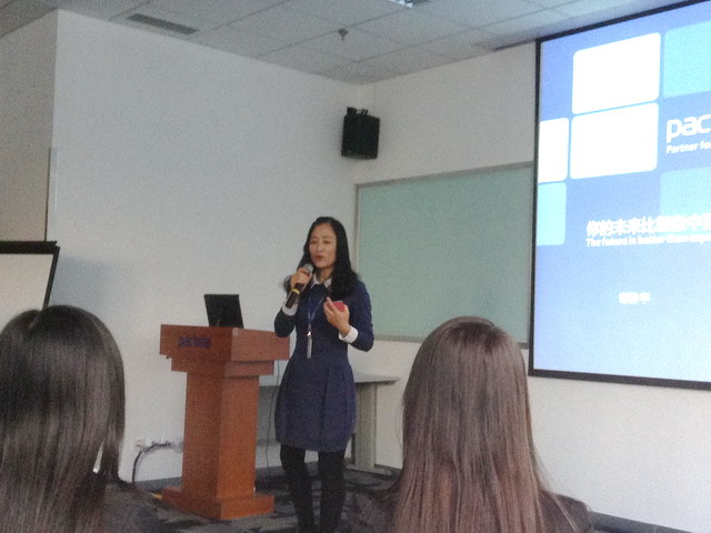 其次,由BPO的项目经理详细介绍了我院学生对口专业的相关信息,包括整个项目组的人员组成,必备日语方面的能力素质以及软实力的要求,让学生们了解到,如何从一个员工做起,一步步走向项目经理的10年的历练。