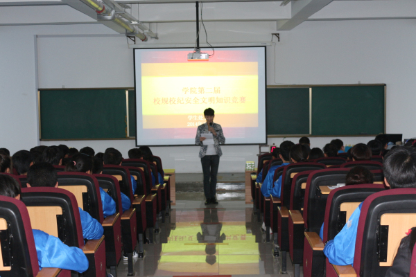 2014年10月30日下午3时,学院在2#教学楼6楼多媒体教室举行了学院第二届校纪校规安全文明知识竞赛。
