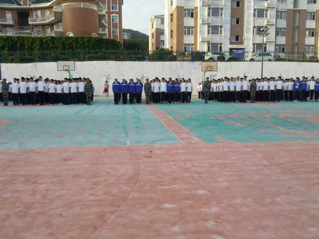 漫长的军姿,踢不完的正步,严格的要求,原来的我们好比是温室里的花朵,受不了一点的风吹雨打,而现在的我们是沙漠里的仙人掌无论在多么恶劣的环境中都会茁壮的成长,不会屈服。严肃的训练场上,听到的是同学们不服输的口号,看到的是同学们在炎炎的烈日下汗流浃背的身影。“掉皮掉肉不掉队,流血流汗不流泪”,已经成为我们心中一个具有震撼力的座右铭。