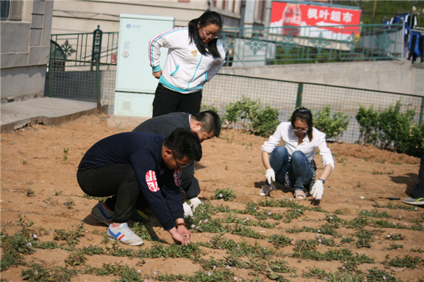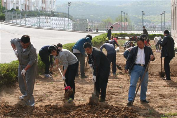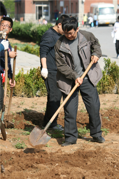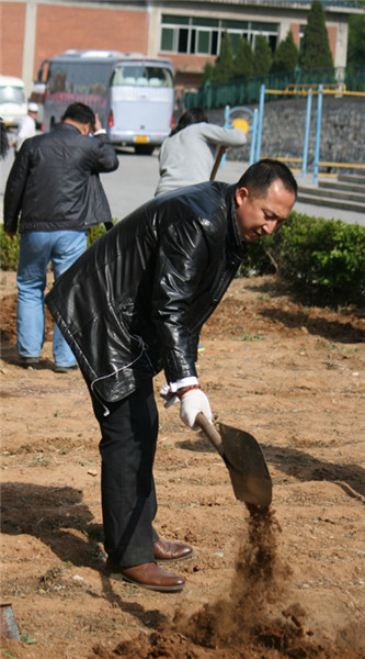 由于党员较多,活动分两组进行,5月9日下午3:00,教务党小组、招生办党小组、机关党小组、学生党小组全体党员共计37人为第一批劳动对象全部准时集合在1号教学楼后,为300多平方米的“党员责任田”进行拔草和翻土的义务劳动。劳动中,不论平时工作中是校长、还是处长等干部,铁锨在握,锄头在手,不怕脏,不怕累,相互协作,以饱满的精神,认真的态度投入其中,充分发挥党员的创先争优精神和模范带头作用,申秀梅书记在劳动中示范指引大家如何铲草才能除根。杨捷校长带领男党员教师翻土,并在活动现场说道:“劳动是一切财富的源泉,热爱劳动不仅是社会主义思想所倡导的一种美德,也是我们中华民族的传统美德。党支部理所当然地应该在全学校大张旗鼓地倡导热爱劳动、尊重劳动、崇尚劳动的风气。”并对党支部提出要求,要将活动不走过场,不搞形式主义的持续进行下去。当日气温高达24度,全体党员汗流浃背,你脱外套,我卷衣袖,一点没有停歇的意思,干劲十足。一阵风起,黄土飞扬,扑的满身都是。然而大家却笑了,不是风、也不是土的缘故,是热情将这次劳动推向了高潮。在不到2个小时的时间里,完成了全部任务。在师生当中树立了党员应有的光辉形象。党员同志们以自己的实际行动实践了共产党员的先进性,诠释了共产党员先进性的真正含义。这次活动,进一步让学校党员在全院师生面前树立起了“一名党员、一面旗帜”的良好形象并带动大家一起提高爱校护校的意识。学校绿化部的师傅在场感叹道,真是人多力量大,党员们也纷纷表示,会将这样的劳动持续下去。