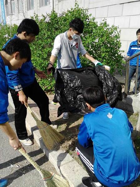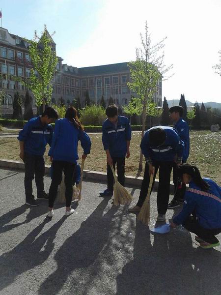 2014年4月22日下午3时,为纪念世界地球日五周年活动,提醒人们重视保护地球环境,制止生态恶化,使每一位地球居民都为捍卫地球环境,改善地球环境做出贡献。我院船舶与计算机系组织了校园大清扫活动。船舶系学生会全体成员在船舶系干事郗状远、叶柏良和朱殿成的带领下拿着各种清扫工具来到了教学楼门口集合,参加“校园是我家,绿色靠大家”为主题的校园卫生清扫活动。