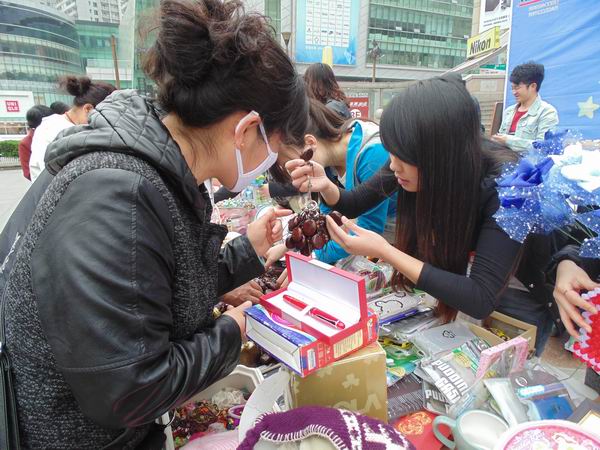 据悉,志愿者协会举办这次活动的目的是让同学们有一次不一样的人生体验,更是为孤独症儿童尽一份绵薄之力。无论对于星星乐园的孩子还是对于同学都是一个别具意义的义卖活动。