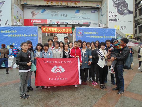 2014年4月11日,早6点30分大连枫叶职业技术学院通关系志愿者协会的同学们全部集合完毕,坐车赶往活动地点。这次的活动是由大连雷锋班组织的,之后所得善款将用于星星乐园孩子们的日后生活。