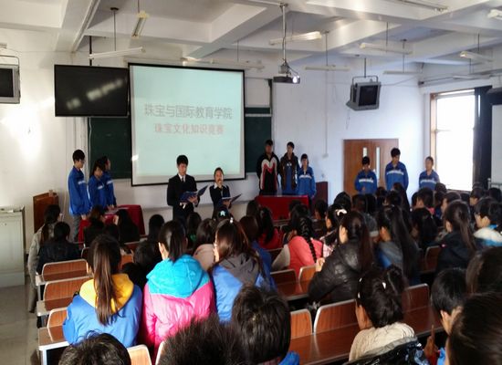 为增强校园文化艺术节浓厚气息,提高学生的学习能力,培养学生的专业技能。2013年11月28日14时,12、13级宝石专业群的学生进行了一场别开生面的珠宝文化知识竞赛。珠宝与国际教育学院主任王晓琳、副主任张桂春以及宝玉石教研组全体老师出席了本次比赛。