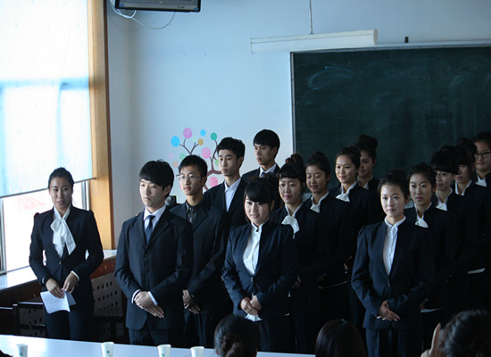 第二个环节:才艺展示。共展示两个节目,第一个节目形体操展示:站姿、坐姿、蹲姿、走姿、手势礼仪等,以展示出不同优雅的姿态美。第二个节目,全体同学合唱歌曲《朋友》。寓意着大家都来自五湖四海,走进枫叶这个大家庭,永远是一家人,体现了枫叶旅游专业同学的团队精神。