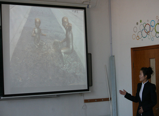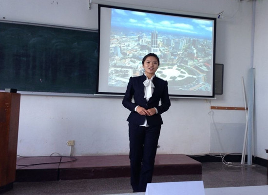 此次大赛共分为三个环节。第一个环节:选手配图讲解。同学们模拟导游形式向大家介绍了大连概况:亚洲最大的城市广场——星海广场、大连金融中心——中山广场、天然海滩——老虎滩、海上要塞——旅顺军港、弘扬奥林匹克精神的奥林匹克广场、政治中心——人民广场、文化中心——友好广场、大连后花园——金沙滩、以及“执子之手,与子偕老”的情人路——滨海路。