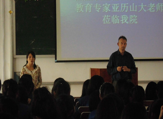 在讲座中亚历山大老师讲述了身为一名幼师应如何教育幼儿,以及如何处理幼儿生活中的问题。告诉同学们对待不同年龄段的孩子该用不同的方式去教育,并举了相关的例子。亚历山大老师告诉同学们:教育的目地是用能接受新思想的头脑去取代一个空虚的灵魂。作为一名幼师,身上肩负着更多的责任。孩子的第一位“老师”是父母,第二位老师就是他们的幼儿园老师,父母的教育能够影响孩子的一生,而幼师就是指引孩子们探索这个世界的路灯。身教胜于言教,作为幼师,就应以身作则从自身开始做起。亚历山大老师的讲座,让同学们深受启发。在讲座中,也积极提出问题,老师一一为大家解答,让同学们受益匪浅。