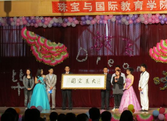 在这即将离别之季,珠宝学院于2013年5月15日下午在综合馆召开2011届毕业生晚会。莅临本次晚会的领导有学院党支部书记,副院长申秀梅、学院顾问张永春,学生处处长高成林、学生处长助理吕运福,教务处副处长张淑萍,团委书记成名、党办主任聂俭丽,珠宝学院主任陈莉莉、副主任肖慧,就业办副主任张晓杰以及各班级毕业班班主任等。