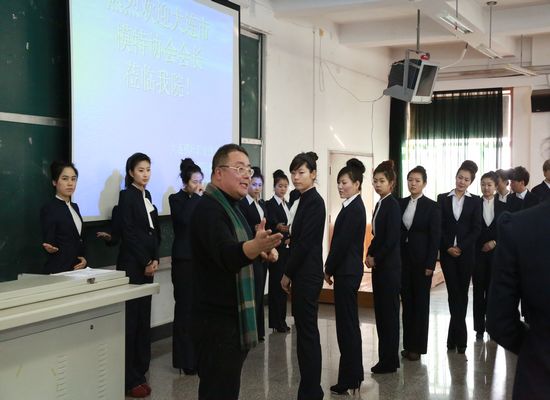 讲座中迟会长以幽默风趣的方式给学生就形体保持练习方法及健康和心理调适等方面内容进行了细致、生动、形象的讲解,同时强调了形体礼仪在服务行业的重要性。他与听取讲座的同学们积极互动,请同学们到台前做示范并亲自给予指导,现场气氛活跃,讲座中同学们现场练习,迟会长走到同学们当中给不规范的同学进行纠正。之后迟会长还就服务行业的“微笑”进行现场讲说,并亲自为同学们做示范,给同学们渗透了微笑服务的必要性和如何微笑才是最美的,传授学生们如何调整内心的状态!这场讲座让同学们受益匪浅,帮助了同学们树立正确审美观念,掌握让自己既健康又美丽的方法,以及服务行业规范的形体礼仪。