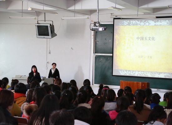 2013年3月20日下午1点,珠宝与国际教育学院宝玉石鉴定与加工技术专业的同学们在学院多媒体教室迎来了一位美丽的职业经理人——于安老师,她与学生进行了一场别开生面的关于中国玉文化的知识讲座。