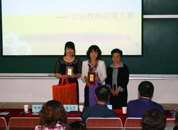 2011年6月1日下午,由我院教务处承办的“我的课程,常说常新”首届教师说课大赛在西多媒体举行。共有7名教师进入决赛,各参赛教师均做了认真准备,充分显示了我院教师的教育教学态度和良好的师德教风。经过一下午的角逐,我院教师王婷婷获得本次说课大赛的一等奖,于东明获得二等奖,张淑萍、张明艳获得三等奖,刘作江、陈莉莉、董心获得优秀奖。
