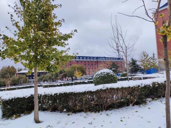 初雪降临的枫叶校园