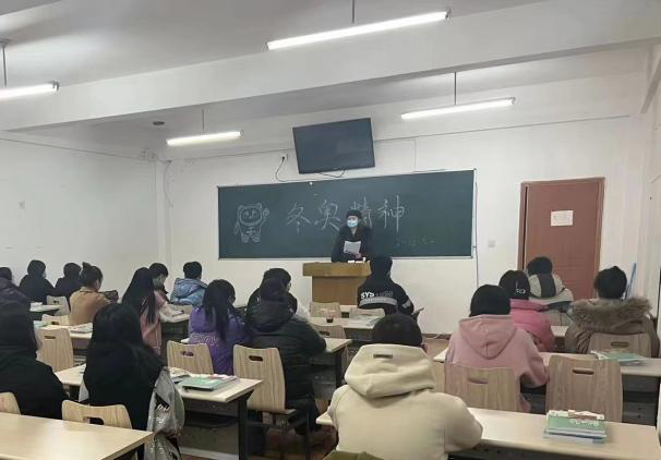 刘阳老师,在《基础日语》课堂上,通过分享冬奥会自由式滑雪女子大跳台金牌得主谷爱凌的励志故事,号召大家学习她对专业的热爱、对美丽的诠释、对困难迎难而上不轻言放弃的拼搏精神。