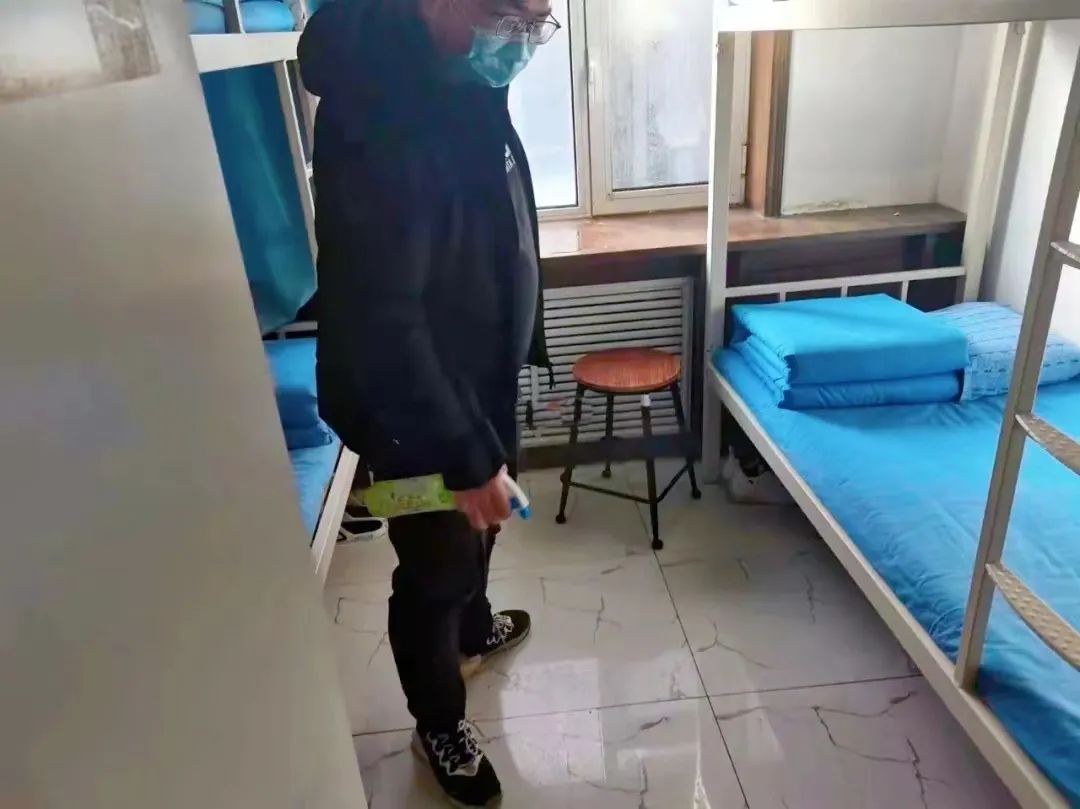 为寝室消毒消杀的刘宇轩老师