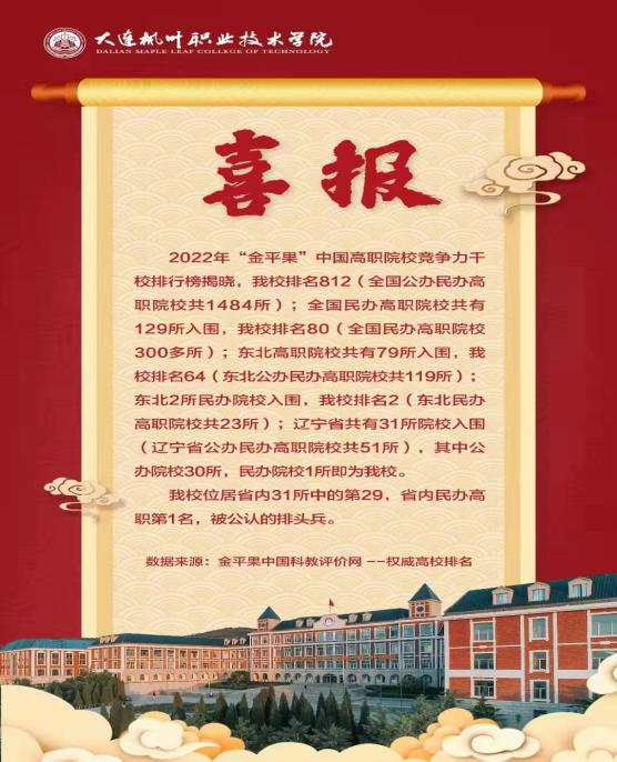结合学校的实际情况,从全国224所民办普通本科院校中,通过学校、地区、类型、专业大类、专业类、专业和专业群等不同维度综合评选,大连枫叶职业技术学院屡获知名第三方评价机构认可。