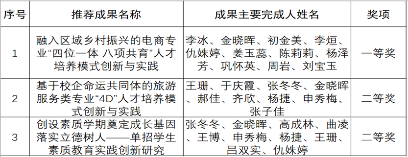 近日,辽宁省教育厅发布了《关于2022年辽宁省职业教育与继续教育教学成果奖评审结果的公示》,本次共评选出全省350项职业教育与继续教育领域的优秀成果,我校3个项目获奖,其中一等奖1项,二等奖2项,获奖名单如下: