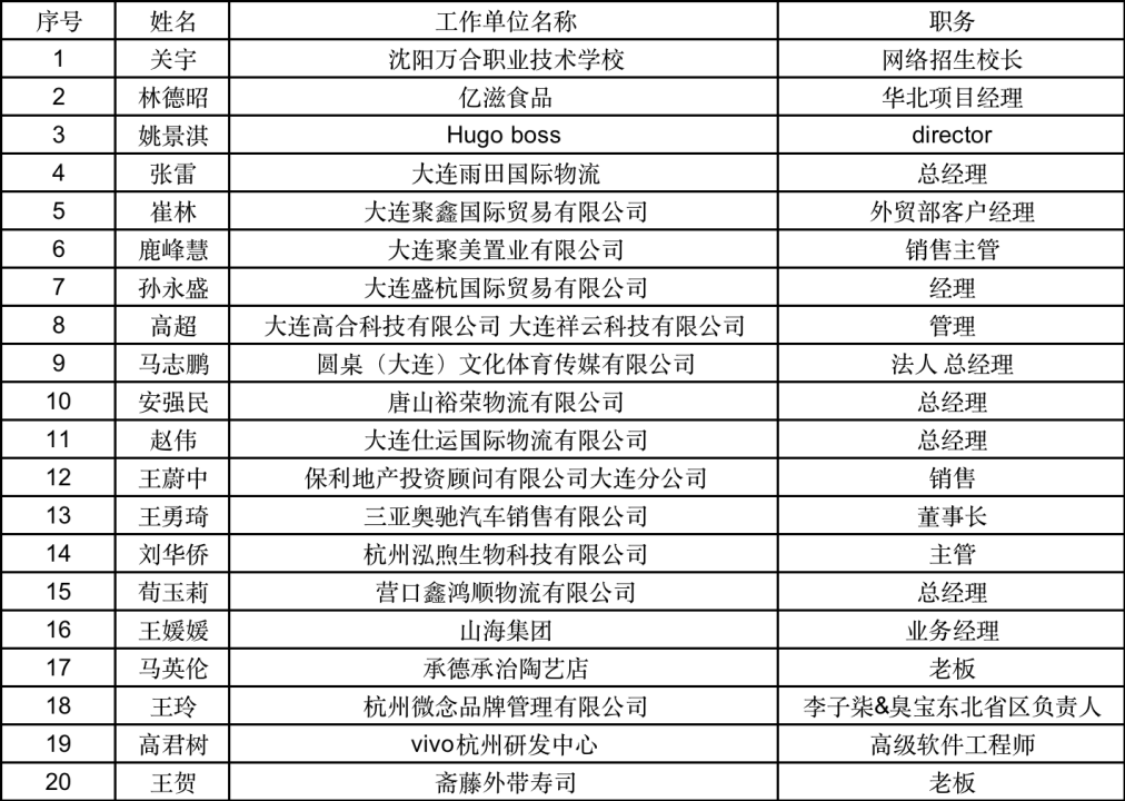 “校友之星”20名