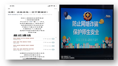 【安全】线上进行安全宣传教育,主要进行电信防诈骗、开启境外来电拦截功能宣传、5.12防灾减灾日、防灾减灾宣传周(5.7-5.13)教育活动,各班级召开主题教育班会,利用新媒体手段进行以“减轻灾害风险 守护美好家园”为主题宣传的教育活动,营造良好的教育氛围,受益师生4000余人。