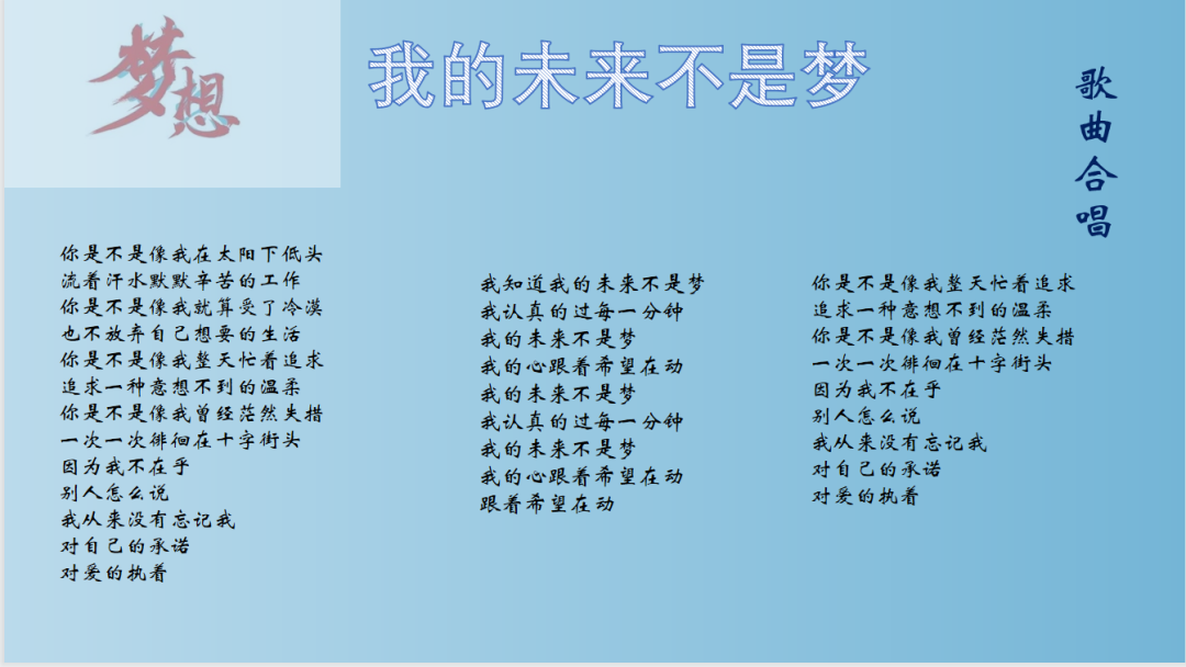 活动尾声,由关务和英语班共同带来了歌曲合唱《我的未来不是梦》,歌声动感欢快,音符间传递出的每一份祝福都在直播间中久久回响。