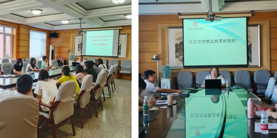 教务处处长张冬冬、马克思主义学院院长王珊,以“高职教育理念入门”“职业院校专业人才培养方案”为题,针对职业院校的特点,从人才培养方案的原则、重要性、工作流程及工作标准等方面,展开详细讲解与介绍。
