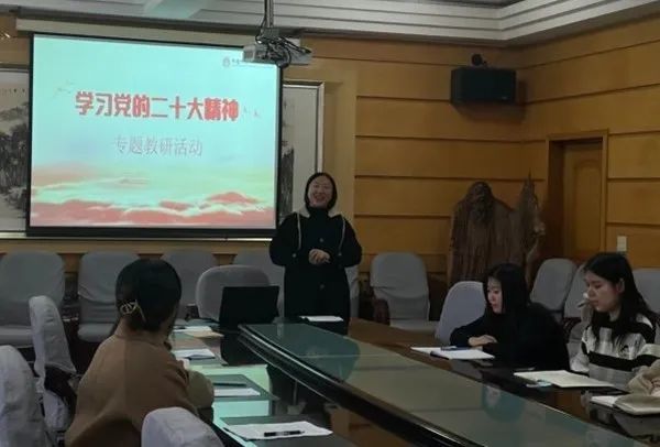 为深入学习宣传贯彻党的二十大精神,11月2日,马克思主义学院举行“学习党的二十大精神”专题教研活动。学院党委书记申秀梅莅临指导,全体思政教师参加活动。